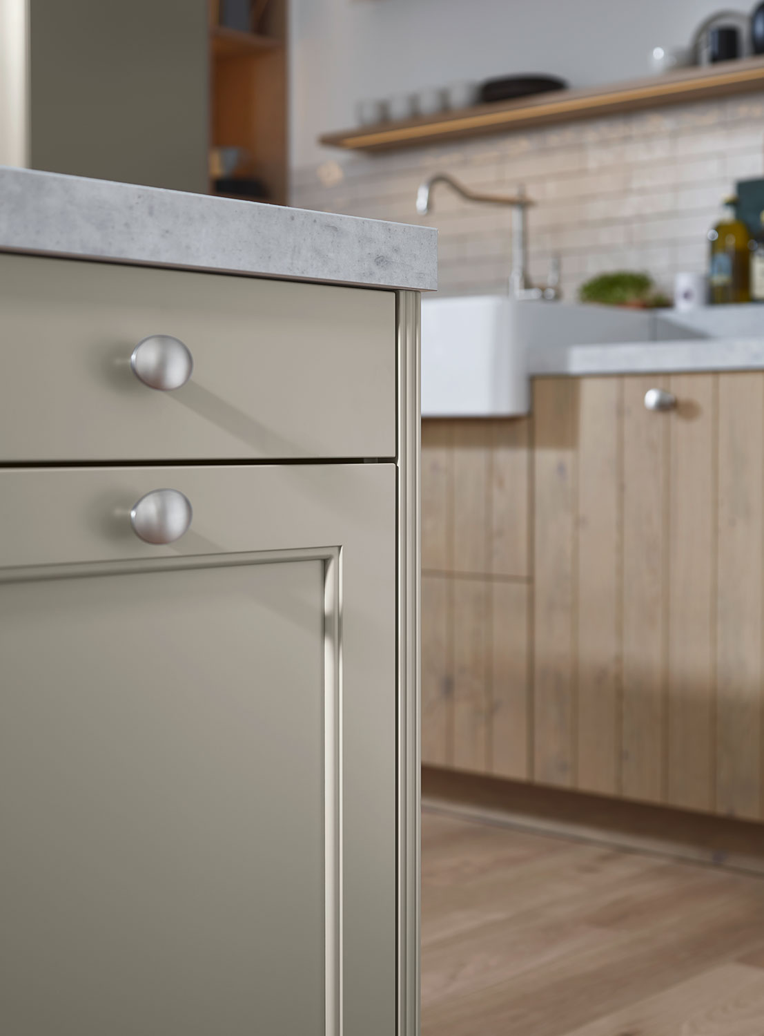 Diese Küche verbindet das Beste aus der Vergangenheit mit den Anforderungen der Gegenwart. Die traditionelle, handwerkliche Bauweise zeigt sich in zahlreichen liebevollen Details. Helle Farben in Kombination mit Holzoberflächen schaffen eine Atmosphäre voller Wärme und Geborgenheit.