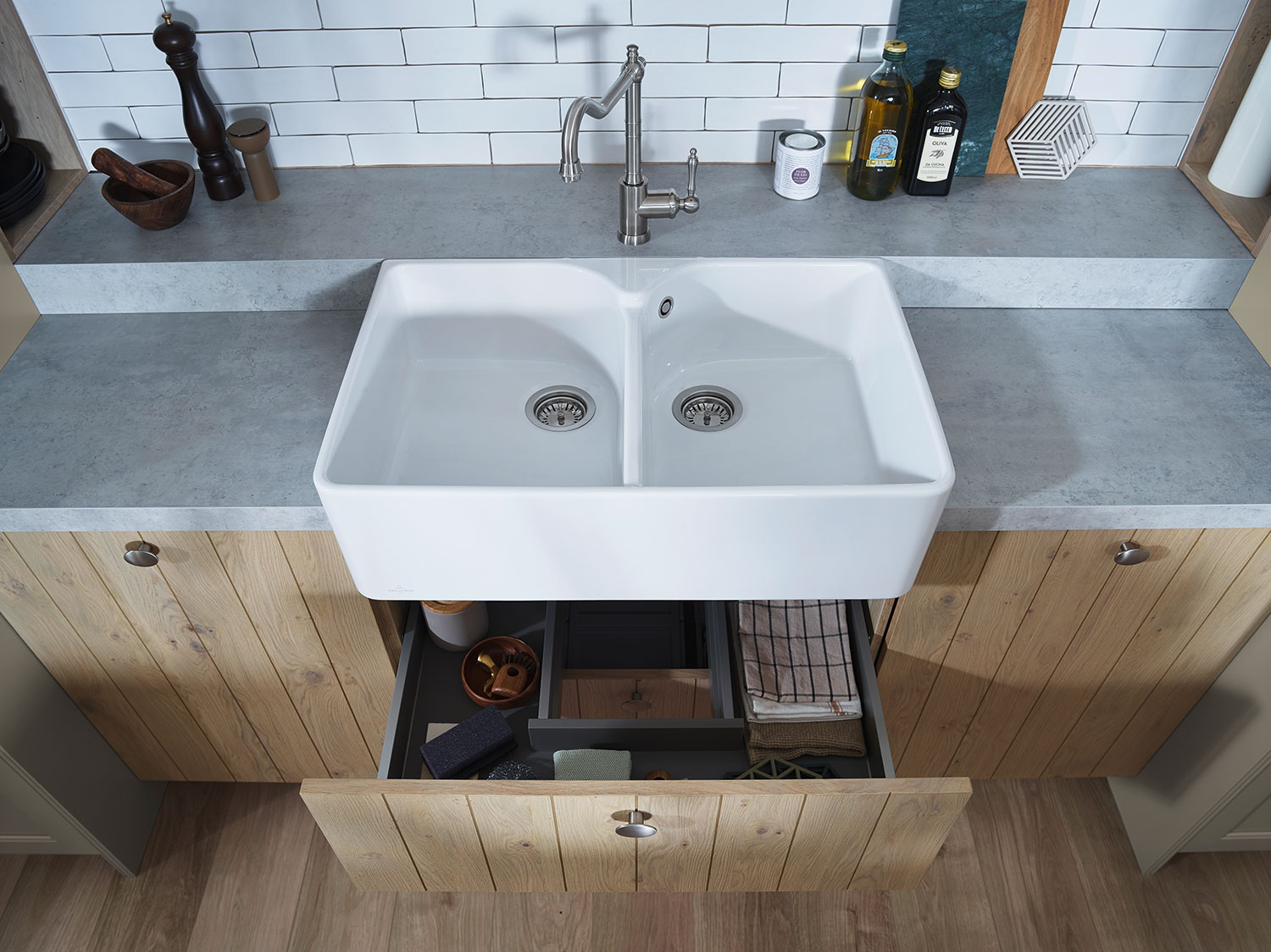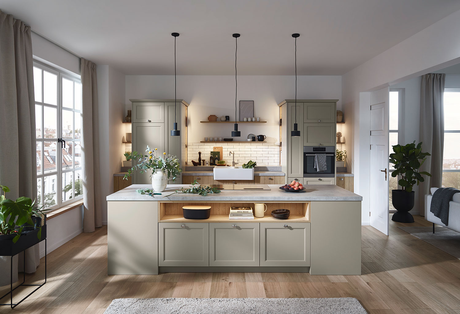 Diese Küche verbindet das Beste aus der Vergangenheit mit den Anforderungen der Gegenwart. Die traditionelle, handwerkliche Bauweise zeigt sich in zahlreichen liebevollen Details. Helle Farben in Kombination mit Holzoberflächen schaffen eine Atmosphäre voller Wärme und Geborgenheit.